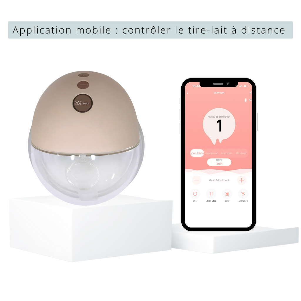 - Bionic mode ( red light) : This mode uses sophisticated technology that imitates the baby's natural behavior when breastfeeding. It is helpful in stimulating the mammary glands and encouraging maximum milk production. - Massage Mode (White Light) : This mode uses rhythmic sucking motions to gently massage the breast, which can help encourage milk flow and relieve breast pain. Mobile app :